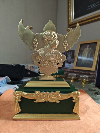 องค์พญาครุฑบูชา พระอาจารย์ วราห์ วัดโพธิทอง รุ่นเปิดขุมทรัพย์ ปี 2560 เนื้อทองเหลืองปิดทอง หมายเลข 148 กว้างวัดจากปีกซ้ายขวา 8 นิ้ว สูง 11.5 นิ้วรวมฐาน