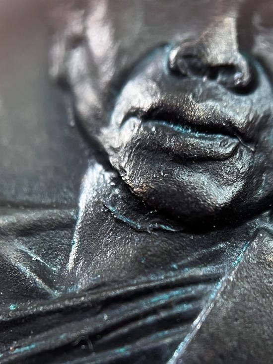หลวงพ่อคูณ ปริสุทโธ วัดบ้านไร่ อำเอำเภอด่านขุนทด จังหวัดนครราชสีมา บล็อกคอปาด ปี 2517 ทองแดงรมดำบล็อกคอปาดปี 2517
