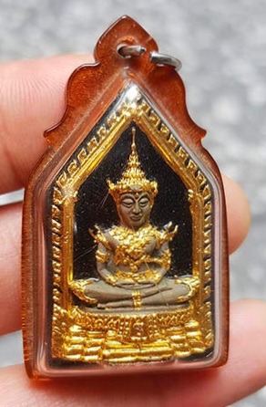 พระแก้วมรกต หลวงพ่อเริ่ม วัดบางพระ ชลบุรี ห้าเหลี่ยม ปี 2513 เนื้อผงลงรักปิดทอง เลี่ยมวินเทจ