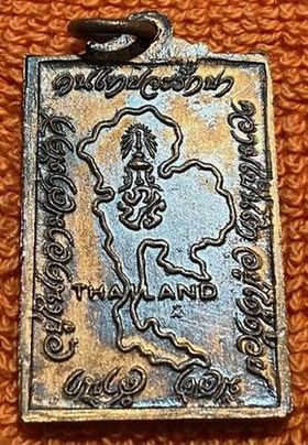 เคาะเดียว...เหรียญสี่เหลี่ยม ท่านเจ้าคุณนร หลัง ภปร คนไทยจะรักษา แผนที่ประเทศไทย ปี 20 ทองแดงรมดำ