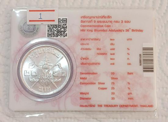 เหรียญกษาปณ์ ชนิดราคา 20 บาท ในหลวงร.9 พระชนมายุครบ 3 รอบ ปี2506 ((( เนื้อเงิน ))) 3.5 ซม. หนัก 20 กรัม สภาพไม่ผ่านใช้ จำนวน 1 เหรียญ ครับ #1# |