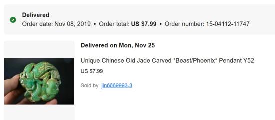 จี้หยกจีนโบราณแกะสลักรูปสัตว์ นกฟีนกซ์
