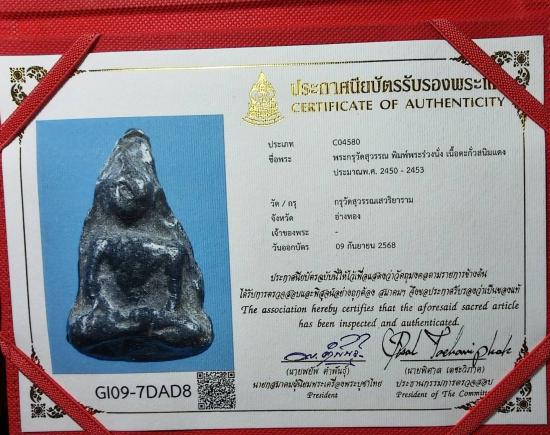 พระกรุวัดสุวรรณ พิมพ์พระร่วงนั่ง เนื้อตะกั่วสนิมแดง ประมาณพ.ศ.2450-2453 กรุวัดสุวรรณเสวริยาราม อ่างทอง