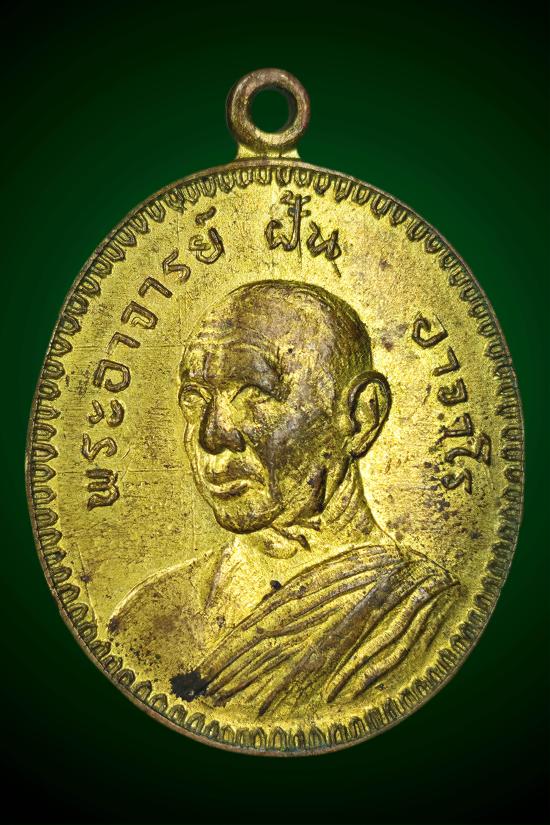 เหรียญพระอาจารย์ฝั้น อาจาโร วัดป่าอุดมสมพร รุ่น 56 ปี 2517 เนื้อทองเหลืองชุบทอง จังหวัดสกลนคร