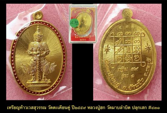 ท้าวเวสสุวรรณ วัดตะเคียนคู่ รุ่น 1 กฐิน 59 จ.ชลบุรี หลวงปู่ฮก ปลุกเสก เนื้อทองฝาบาตร #431 เคาะเดียว