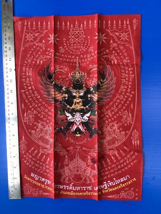 ผ้ายันต์ พญาครุฑ รุ่น เศรษฐีเงินไหลมา วัดพระศรีมหาธาตุวรมหาวิหาร จ.นครศรีธรรมราช สีแดง ขนาด A3 ขนาด 11.5 นิ้ว x 16.5 นิ้ว |