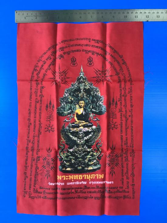 ผ้ายันต์ พระพุทธานุภาพ วัดนาคปรก เขตภาษีเจริญ กรุงเทพมหานคร สีแดง ขนาด A3 ( 11.5 นิ้ว x 16.5 นิ้ว )
