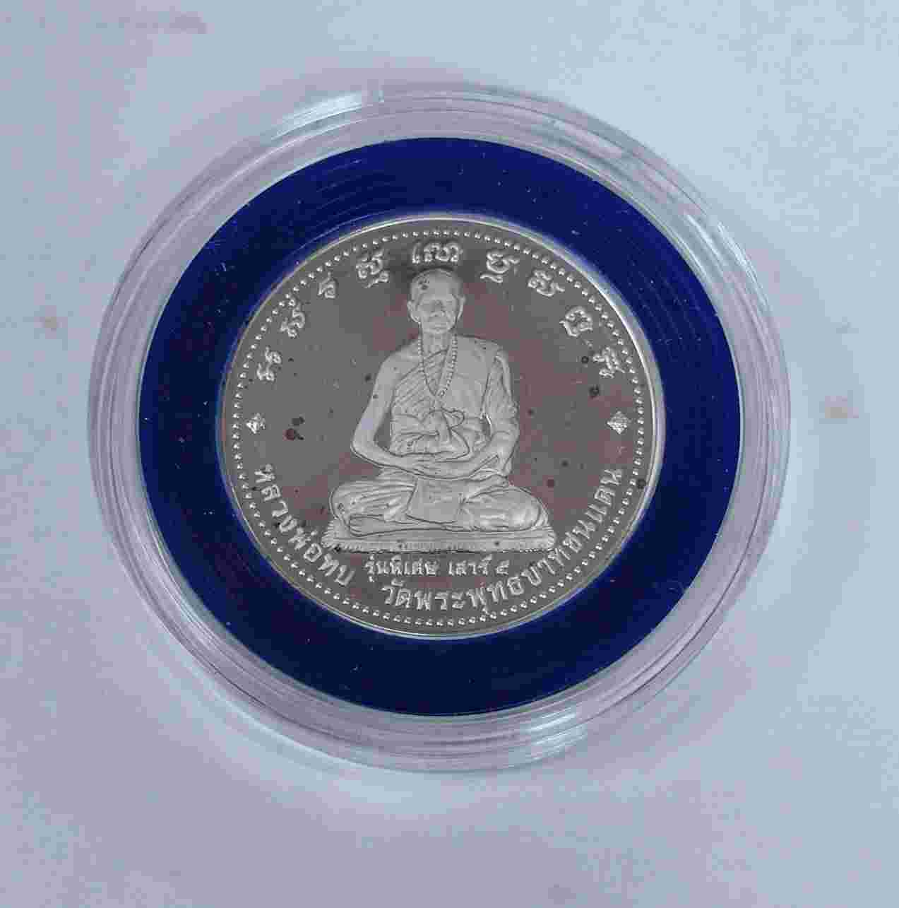 เหรียญหลวงพ่อทบ รุ่นพิเศษในรอบ 20 ปี เนื้อเงินขัดเงา วัดพระพุทธบาทชนแดน จ.เพชรบูรณ์ ปี 2539 (กล่องเดิม) |
