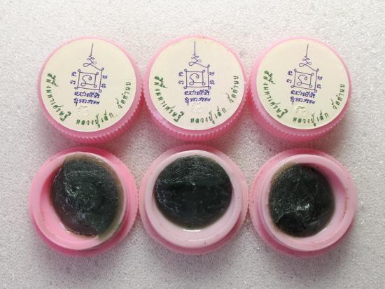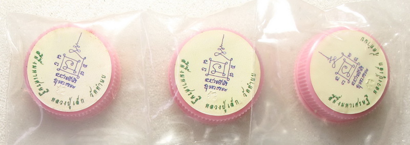 สีผึ้งมหาเศรษฐี (สีผึ้งเขียว) หลวงปู่เล็ก วัดทำนบ อ่างทอง ปี 2558 รวม 3 ตลับ