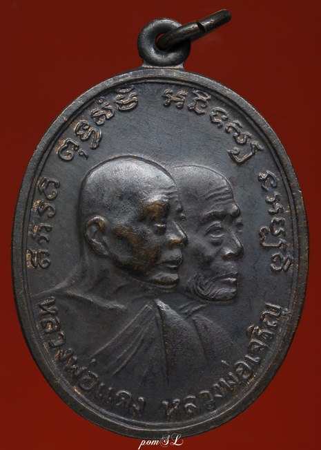 เหรียญหลวงพ่อแดง(วัดเขาบันไดอิฐ) หลวงพ่อเจริญ(วัดทองนพคุณ) วัวลาน บล็อกยันต์ทะลุ ปี2513 เนื้อทองแดง