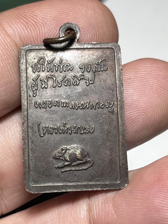 ขอให้ท่านจงเป็นผู้มีโชคดีไปตลอดกาลและนานเทอญ คำอวยพรหลวงพ่อเกษม เหรียญหลวงพ่อเกษม เขมโก หลังหนู แจกผ้าป่าวัดไตรมิตร ปี 2531 เนื้อทองแดง |