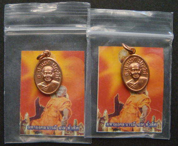 เหรียญเม็ดแตง รุ่นแรก หลวงปู่แขก ปภาโส วัดสุนทรประดิษฐ์ พิษณุโลก ปี2552 เนื้อทองแดง พร้อมภาพติดจีวร รวม 2 เหรียญ