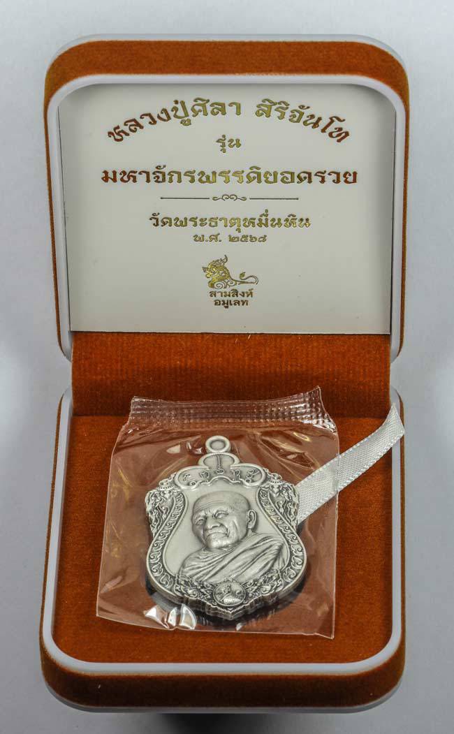 เคาะเดียว หลวงปู่ศิลา รุ่นมหาจักรพรรดิยอดรวย วาระไหว้ครูปี 2568 พิมพ์เสมา เนื้อเงินซาติน เลข 589