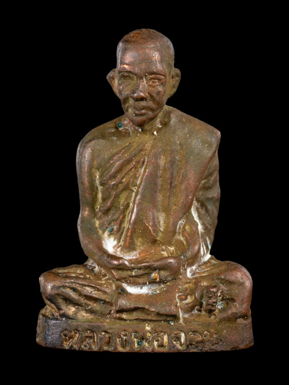 รูปหล่อ รุ่นแรก หลวงพ่อจวน วัดหนองสุ่ม สิงห์บุรี ปี17 เนื้อนวะ กล่องเดิม