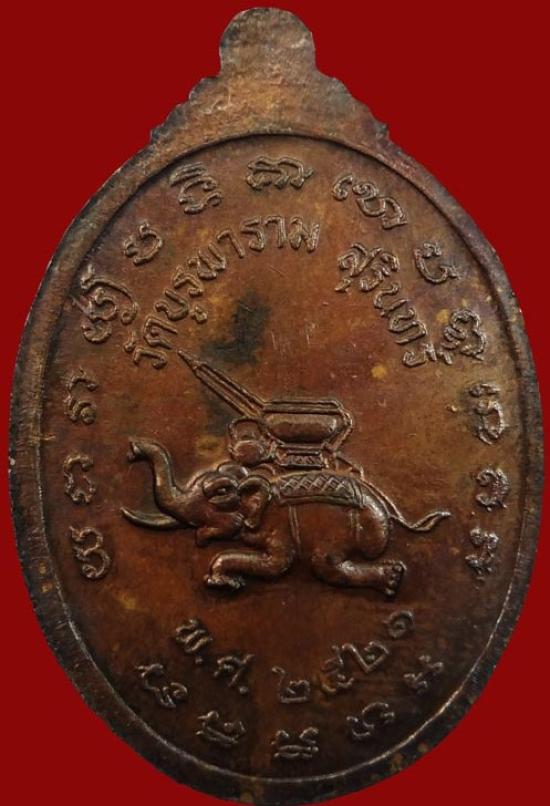 หลวงพ่อปู่ดุลย์ วัดบูรพาราม พิมพช้างหมอบเล็ก...พิเศษหูตัน...เนื้อทองแดง สภาพสวย
