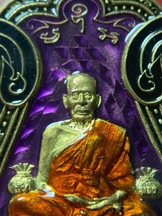 หลวงพ่อพัฒน์ วัดห้วยด้วน เศรษฐีทวีทรัพย์ 100 ล้าน เลข 799 เนื้อทองฝาบาทรลงยาม่วง พร้อมดล่องเดิม