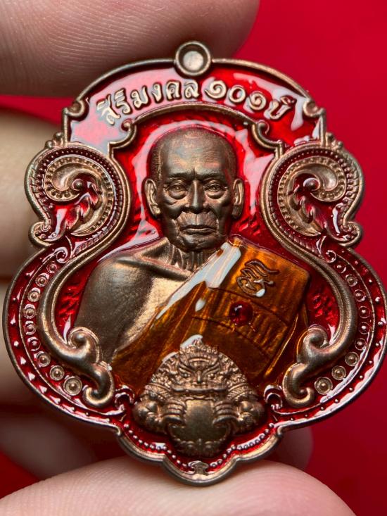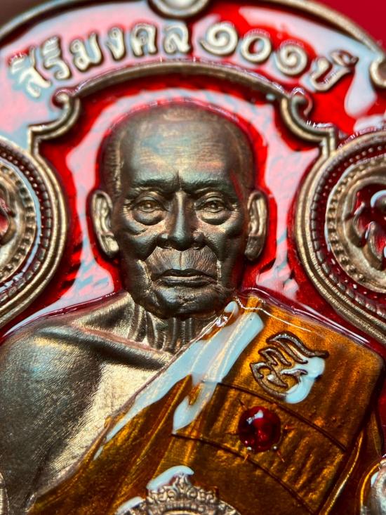 เหรียญที่ระลึกอายุ 101 ปี หลวงพ่อพัฒน์ วัดห้วยด้วน รุ่น สิริมงคล 101 ปี เนื้อนวะลงยาแดง ฝังพลอยแดง พิเศษสมนาคุณยกลัง เลข 36 พร้อมกล่องเดิม!!
