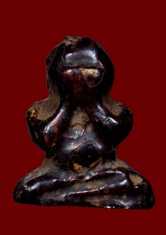 พระปิดตาเนื้อผงเคลือบรักเก่าไม่ทราบที่ |