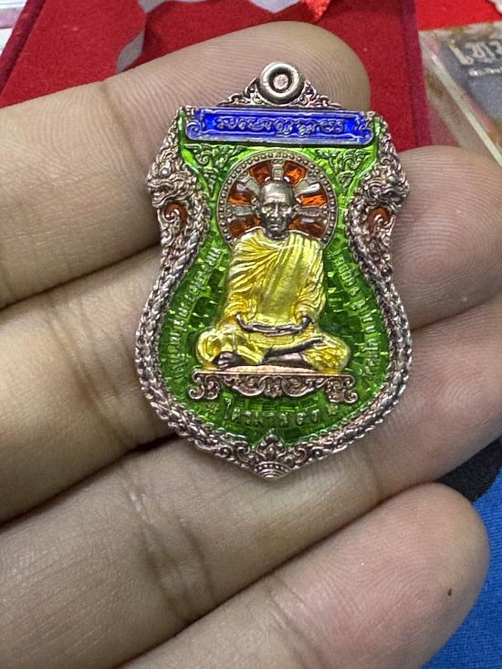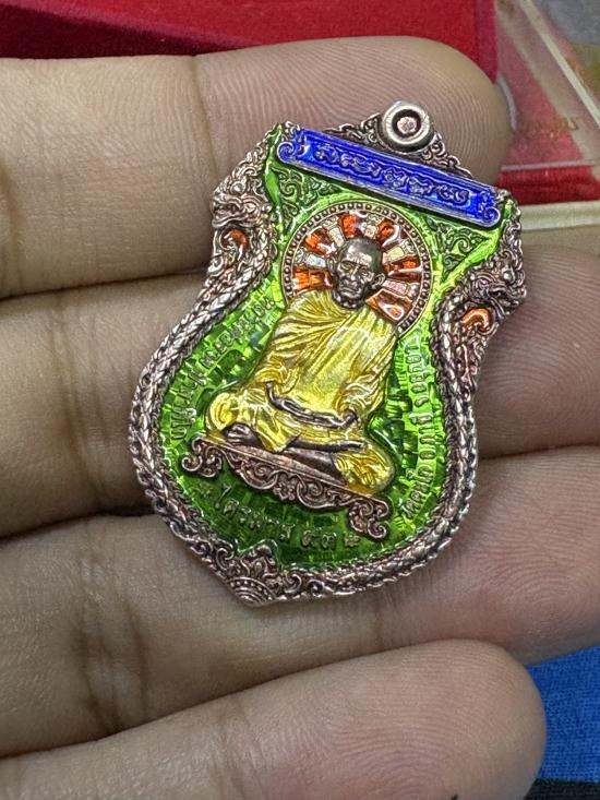 HOT!!! เหรียญไตรมาส 93 เนื้อเงินลงยาสีเขียว ปี 2557 เลข 599 หลวงพ่อรวย วัดตะโก พร้อมกล่องเดิม