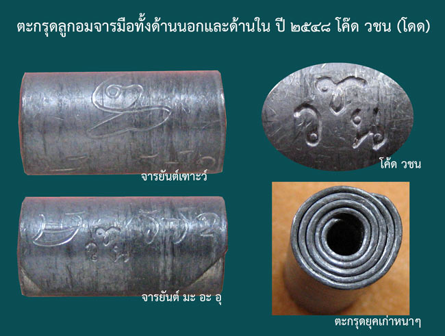 ตะกรุดลูกอมจารมือทั้งด้านนอกและด้านใน ปี ๒๕๔๘ โค๊ด วชน (โดด) ด้านในจารยันต์มหาอุด ความยาว ๒ ซม.