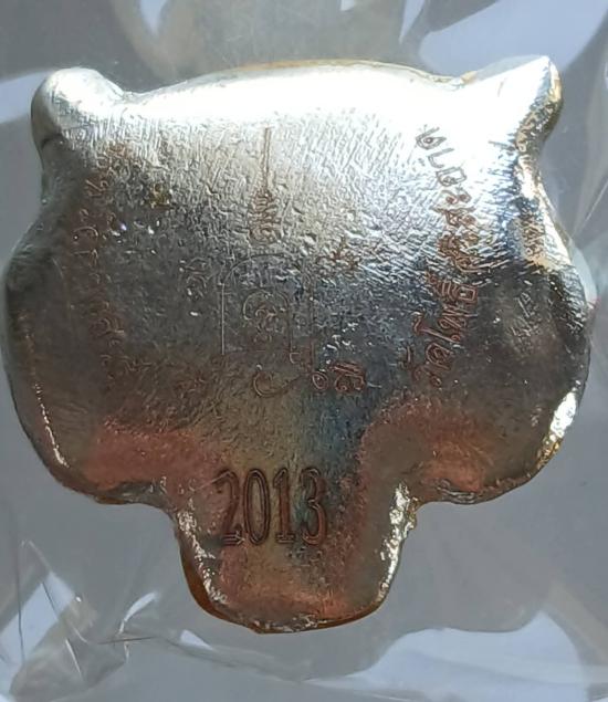 เคาะเดียว..หน้าพยัคฆ์ เนื้อโลหะชุบเงินลงยา หลวงปู่ศิลา ออกวัดโพธิ์ศรีสะอาด กล่องเดิมลงยา