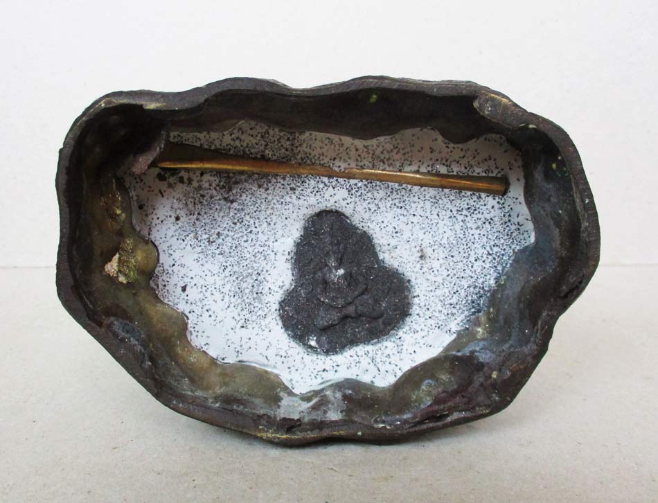 ภาพใต้ฐานขนาด 5.5 นิ้ว อุดปูน ฝังพระผงรูปเหมือนพ่อปู่ฤาษีสิงห์สมิงพราย 1 องค์ ตะกรุด 1 ดอก