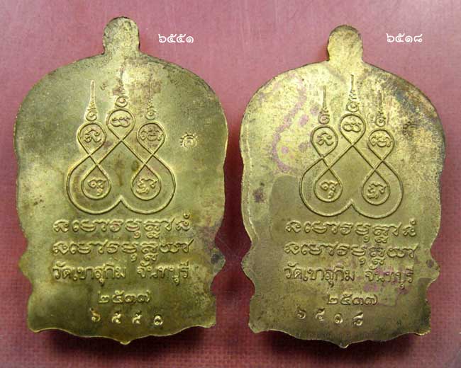 เหรียญนั่งพาน เนื้อทองเหลือง หลวงพ่อสมชาย วัดเขาสุกิม ตอกโค้ด ส และโค้ด จำนวน 2 เหรียญ หมายเลข ๖๕๕๑ และ ๖๕๑๘ ได้มาจากคนในพื้นที่