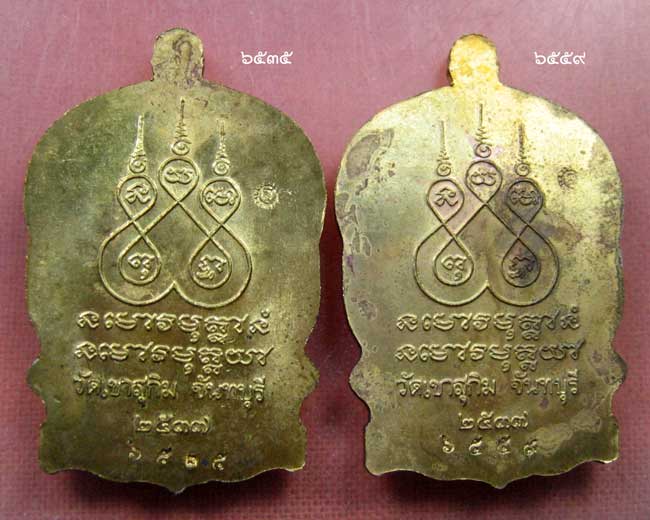 เหรียญนั่งพาน เนื้อทองเหลือง หลวงพ่อสมชาย วัดเขาสุกิม ตอกโค้ด ส และโค้ด จำนวน 2 เหรียญ หมายเลข ๖๕๓๕ และ ๖๕๕๙ ได้มาจากคนในพื้นที่