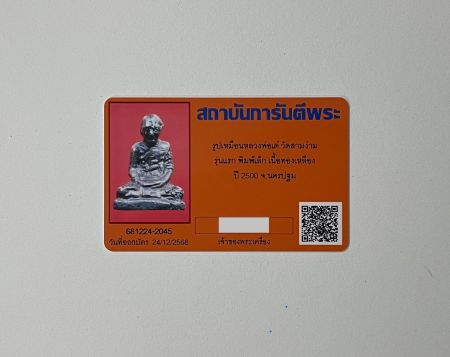รูปหล่อรุ่นแรกหลวงพ่อเต๋ วัดสามง่าม พิมพ์เล็ก ปี 2500 พร้อมบัตรรับรอง G