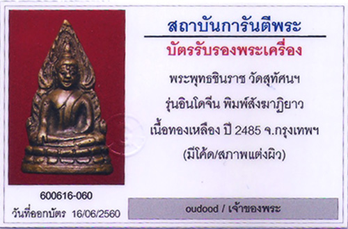 ให้พร้อมบัตรรับรองพระเครื่อง G-pra