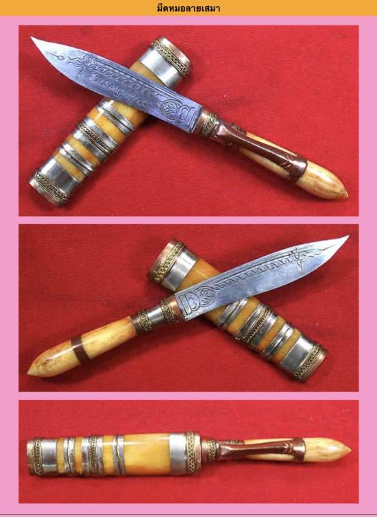 เคาะเดียว มีดหมอลายเสมาด้ามและฝักกระดูกช้าง ปลอกแหนสามกษัตริย์ ยาวรวม5นิ้ว ไม่ทราบที่