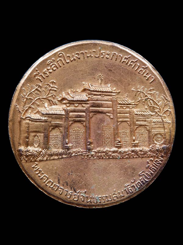 เหรียญที่ระลึกในงานประกาศศาสนา พระมหาคณาจารย์จีนธรรมสมาธิวัตร(โพธิ์แจ้ง) วัดโพธิ์แมนคุณาราม กรุงเทพฯ ปี2515