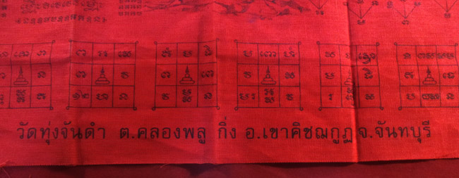 ผ้ายันต์ วัดทุ่งจันดำ ต.คลองพลู กิ่ง อ.เขาคิชฌกูฏ จ.จันทบุรี