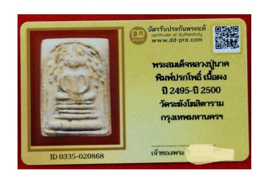พระสมเด็จปรกโพธิ์ หลวงปู่นาค วัดระฆังโฆสิตาราม ปี 2495 ที่มาพร้อมกับ "บัตรรับรองพระแท้ (บัตรดีดี)" ถือเป็นตัวเลือกที่ยอดเยี่ยมมากครับ เพราะนอกจากจะเป็นพระดีมวลสารเด่นแล้ว ยังมีความอุ่นใจในเรื่องมาตรฐานความแท้อีกด้วย
