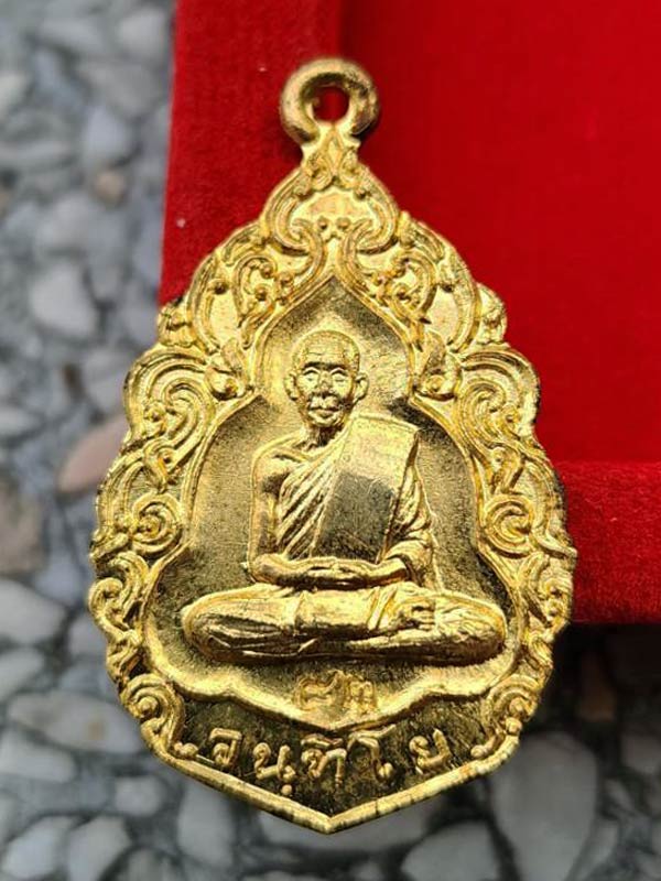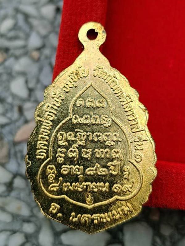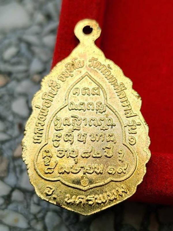 เหรียญลายกนก "รุ่น 1" ปี2519 หลวงปู่กินรี จนฺทิโย วัดกัณตะศิลาวาส จ.นครพนม (ตอกโค๊ต,ตอกเลข ๘๓) กะไหล่ทอง กล่องเดิม