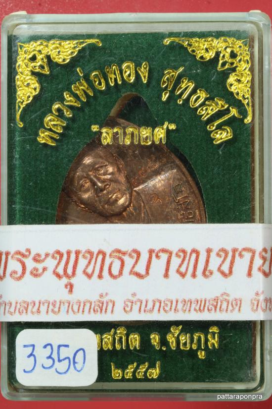 เหรียญหลวงพ่อทอง รุ่นลาภยศ ปี 2557 เนื้อทองแดง มีจารหลวงพ่อทอง หมายเลข 3350 |