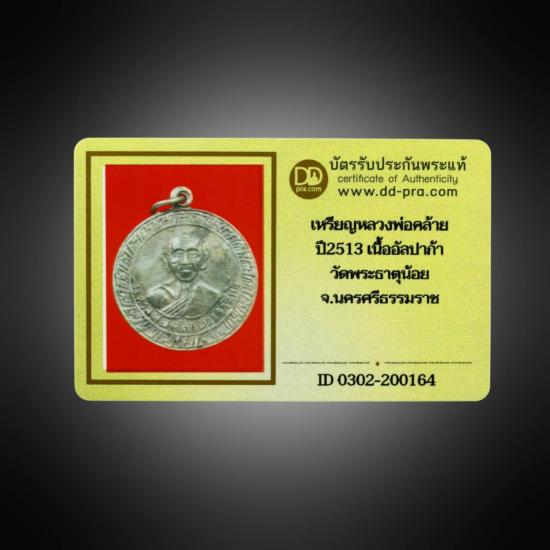 เหรียญกงจักร พ่อท่านคล้าย (วาจาสิทธิ์) ปี 2513 ออกวัดพระธาตุน้อย จ.นครศรีธรรมราช เนื้ออัลปาก้า พร้อมบัตรรับรอง