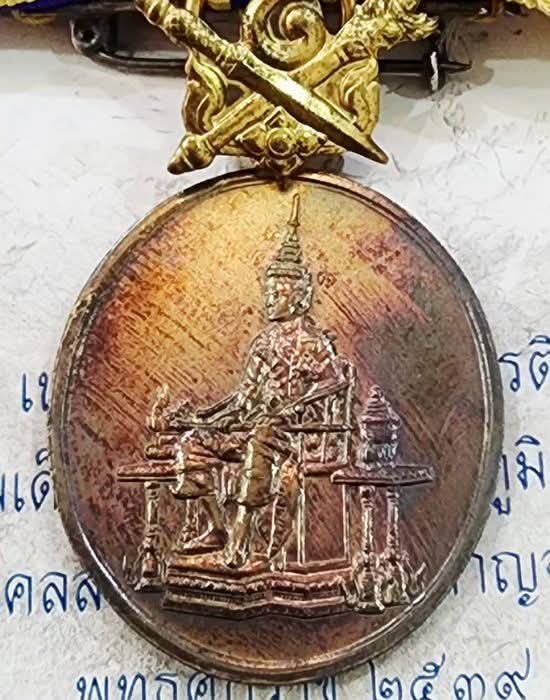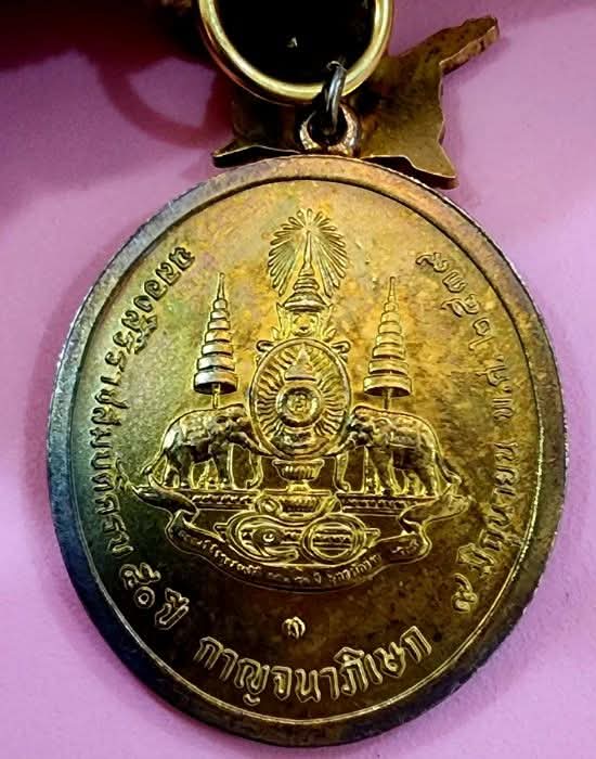 เหรียญแพรแถมเนื้อเงิน กระไหล่ทองรัชกาลที่9 นั่งบัลลัง หลังปีกาญจนาภิเษก