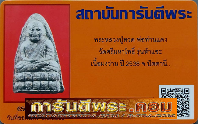 รายละเอียด หลวงปู่ทวด พ่อท่านแดง วัดศรีมหาโพธิ์ รุ่นห้าแชะ ปี2538 พร้อมบัตรรับรอง
