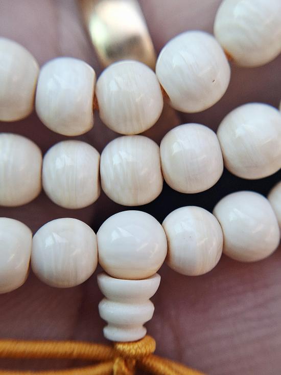 ขอลงกระทู้นี้ครับ สร้อยประคำงาแกะ 5mm.กว่าๆ 108เม็ด สร้อยยางยืดสวมหัวได้ครับ