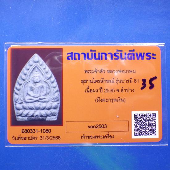 พระผง พิมพ์เจ้าสัว รุ่นบารมี 81 หลวงพ่อเกษม ฝังตะกรุดเงิน ปี2535....35.. (68.6.24