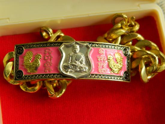 เลสพันล้าน2 หลวงพ่อพัฒน์วัดห้วยด้วย เนื้อทองเหลืองลงยาสีชมพูหน้ากากชินเวอร์ขาว หนัก4บาท พร้อมกล่องครับ