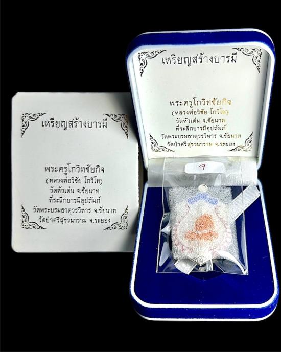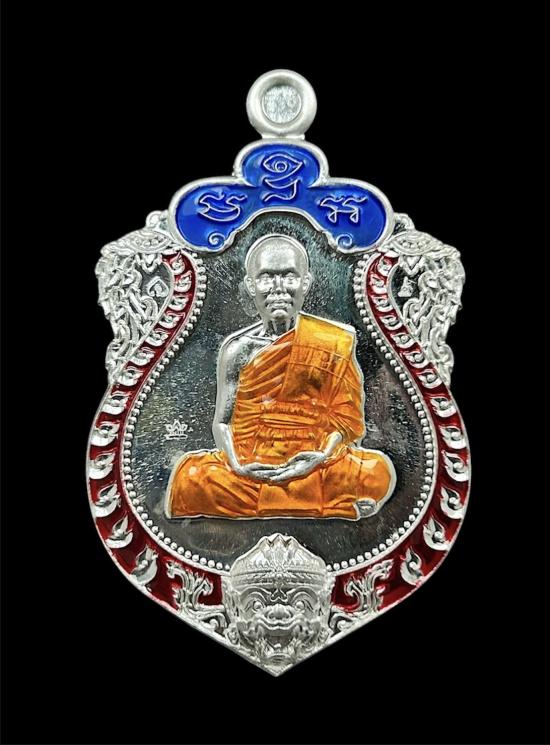เหรียญเสมาสร้างบารมี หลวงพ่อวิชัย วัดหัวเด่น "เนื้อเงินลงยาหลังกึ่งเรียบ" หมายเลข 9 (1 ใน 9 เหรียญ)