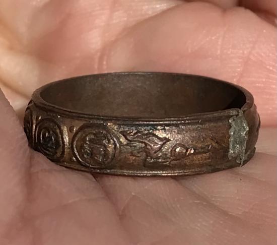 แหวนมงคลเก้า เนื้อทองแดง ไม่ทราบที่ สวยครับ