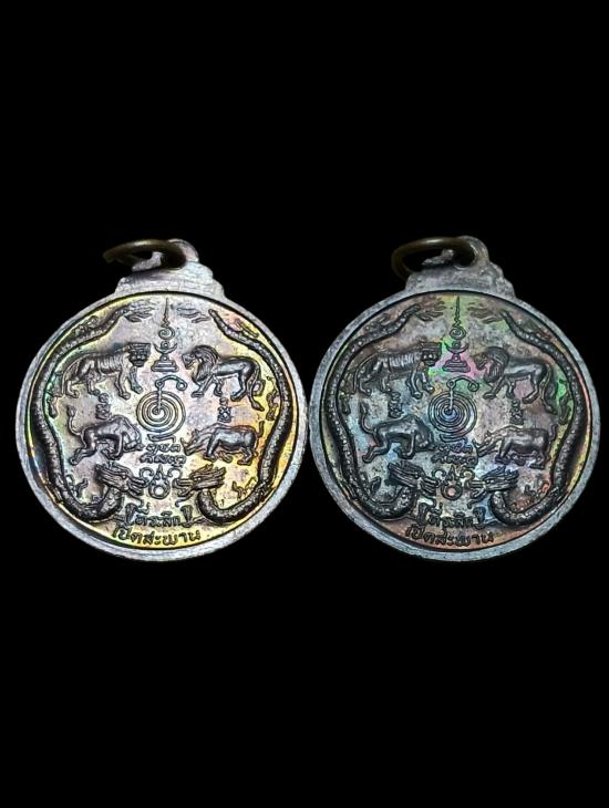 เหรียญหลวงพ่อเปิ่น วัดบางพระ นครปฐม ปี 2531 ตอกโค๊ด หลัง เสือ สิงห์ กระทิง แรด มังกรคู่ รวม 2 เหรียญ ผิวรุ้ง สวยครับ