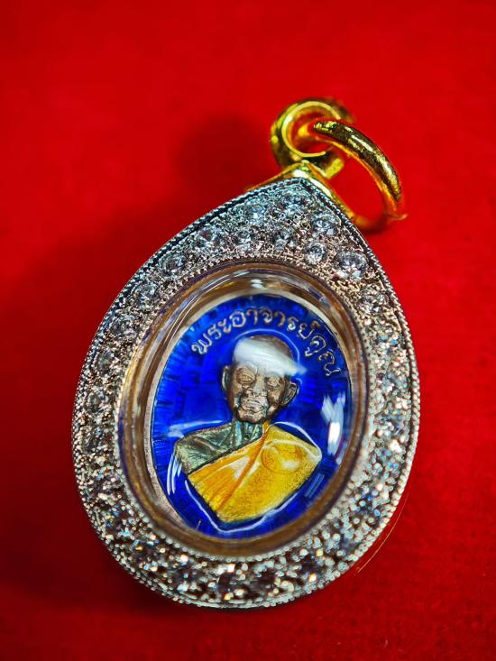 เหรียญเม็ดแตงหลวงพ่อคูณ รุ่นอายุยืน เนื้อเงินลงยา ปี2553 พร้อมเลี่ยมกรอบทองอิตาลี