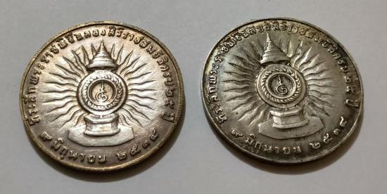 เหรียญ เนื้อเงิน ร9 ครองราชย์สมบัติครบ 25 ปี รวม2เหรียญ