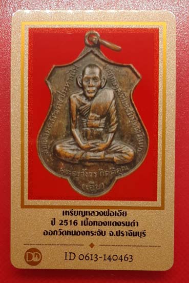 เหรียญหลวงพ่อเอีย ออกวัดหนองกระจับ เนื้อทองแดง ปี2516 จ.ปราจีนบุรี พร้อมบัตรรับรองครับ