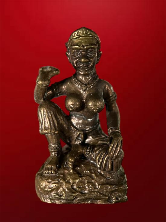 รูปหล่อนางพันธุรัตน์ เรียกทรัพย์ อาจารย์ปู่บุญมา พุ่มมาลี เจ้าตำรับมนต์จินดามณี เนื้อโลหะอุดผงฝั่งตะกรุดเงิน 1 ดอก ตอกโค๊ตด้านหลัง