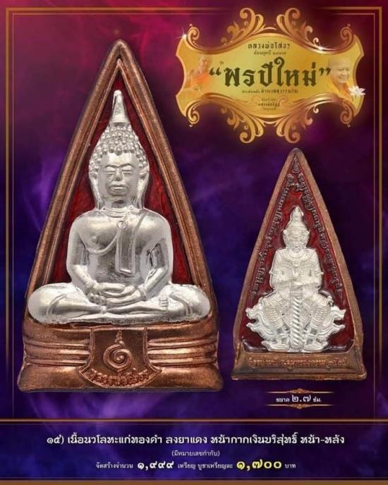 หลวงพ่อโสธร พรปีใหม่ หลวงพ่ออิฐ วัดจุฬามณี เนื้อนวะแก่ทองคำ ลงยาแดง หน้ากากเงินบริสุทธิ์ หน้า-หลัง |